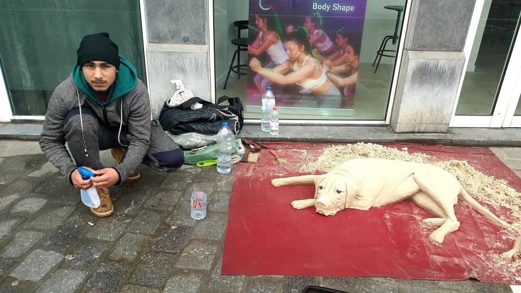 Avec son chien de sable, le jeune Roumain a récolté bien plus de bienveillance que tous les SDF de la Grand-Place réunis. Car hélas, les Tournaisiens – mais cela ne leur est pas propre – ne font pas toujours preuve de beaucoup d’indulgence à l’égard des mendiants et des sans-abris, de plus en plus nombreux ces dernières années sur le forum de la cité.