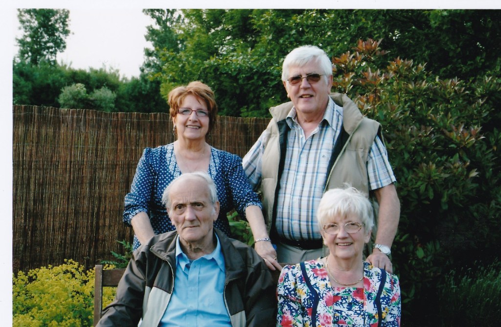 Avec ses deux sœurs et son frère. Il ne reste plus que Marie-Jeanne aujourd’hui, ma tante Nounou. René et Bernadette ont rejoint Papa.